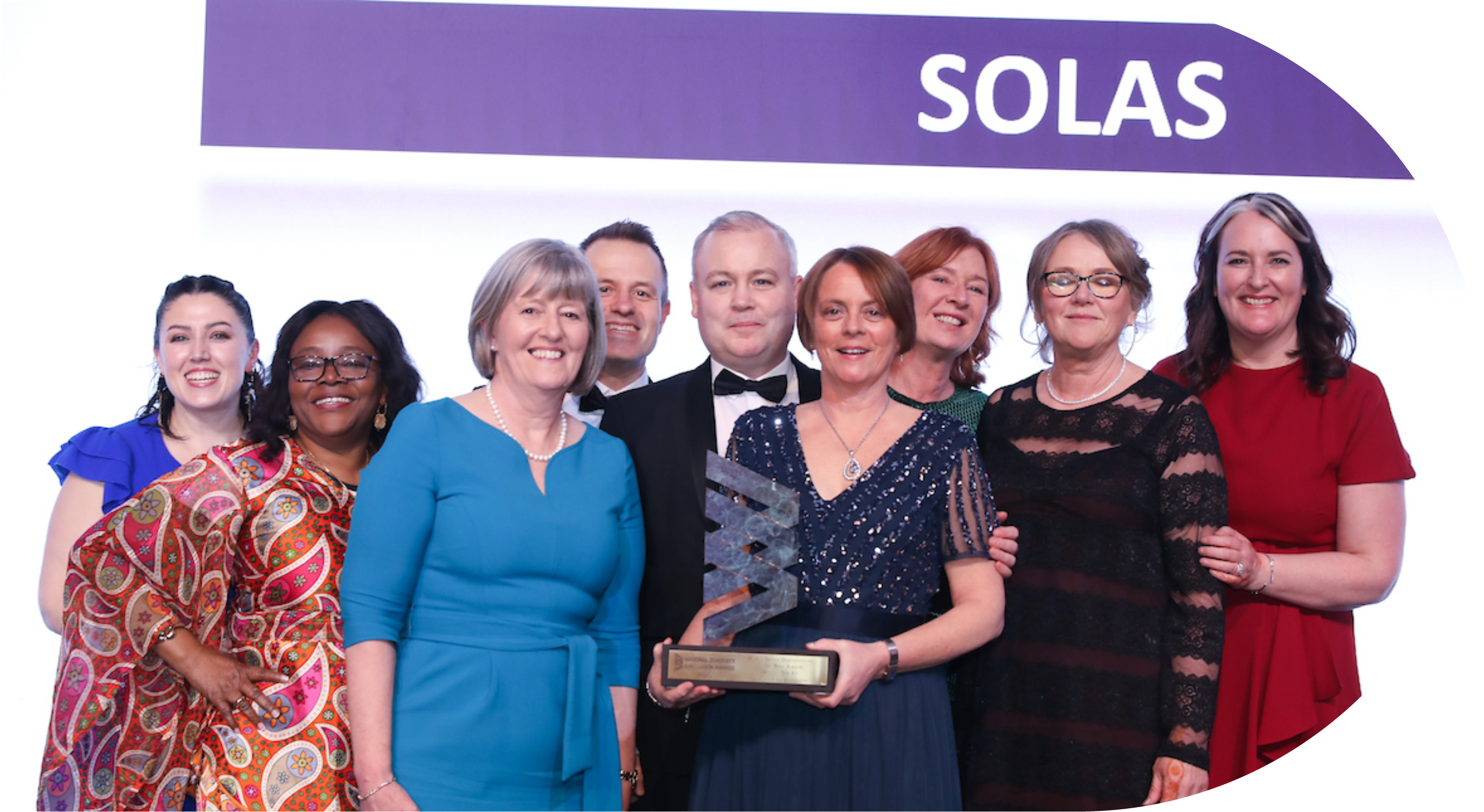Congratulations to Solas, who won the Public Sector Organisation of the Year category at the National Diversity & Inclusion Awards 2025. The awards were held at the Clayton Hotel Burlington Road on Friday 7th February and the award was presented by our CEO, Margaret McCabe. Solas won the award having impressed the judges with the tangible, measurable impact they are having on people's lives and their community, as well as their commitment to inclusion at every level of their organisation. Well done again to the other category finalists, Bord na Móna, Fáilte Ireland, HEAnet, HPRA, and Uisce Éireann.